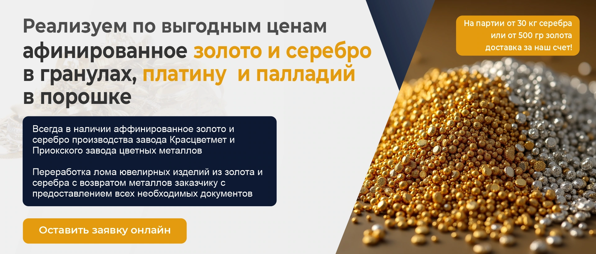Наличие прямых договоров с крупнейшими российскими аффинажными заводами позволяет нам выставлять действительно привлекательные ценники.